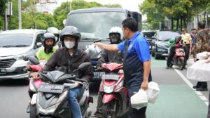 Sebanyak 1.000 paket makanan gratis dibagikan kepada masyarakat yang melintas di sekitar lingkungan kantor sebagai bagian dari program rutin yang terus diperluas manfaatnya, Jumat (21/11/2025)