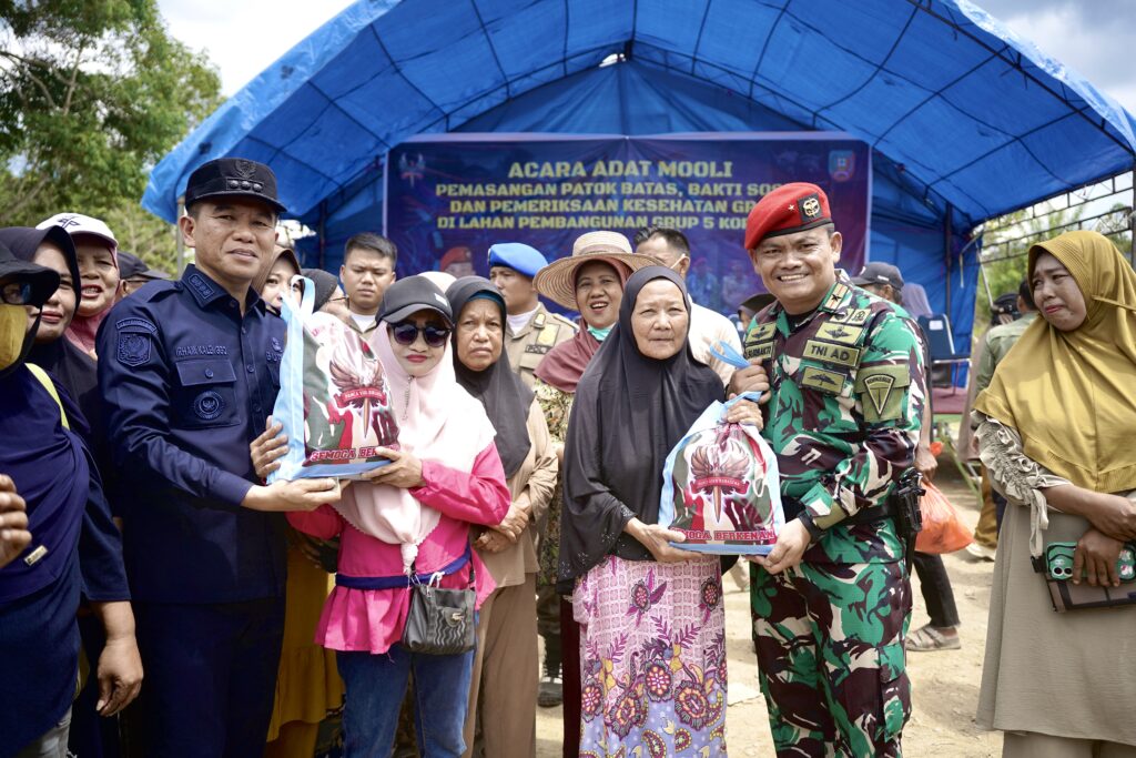 HALLONEWS.COM — Pelaksanaan acara adat Mooli disertai kegiatan bakti sosial dan pemeriksaan kesehatan gratis yang digelar di lahan pembangunan Grup 5 Kopassus berlangsung aman dan lancar, Kamis (6/11). Kegiatan berlangsung di Gerbang Batas Desa Ambesea–Lalonggombu, Kecamatan Laeya, Kabupaten Konawe Selatan, mulai pukul 08.30 hingga 10.30 WITA.